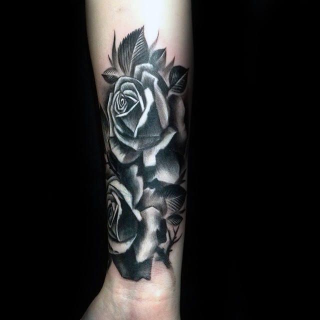 Forearm Black Rose Tattoo Men